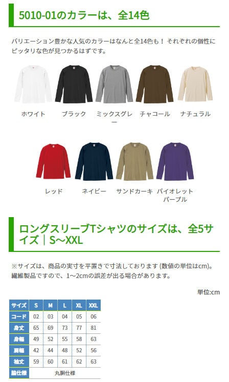 ・ロングスリーブTシャツのサイズは、全5サイズ|S~XXL