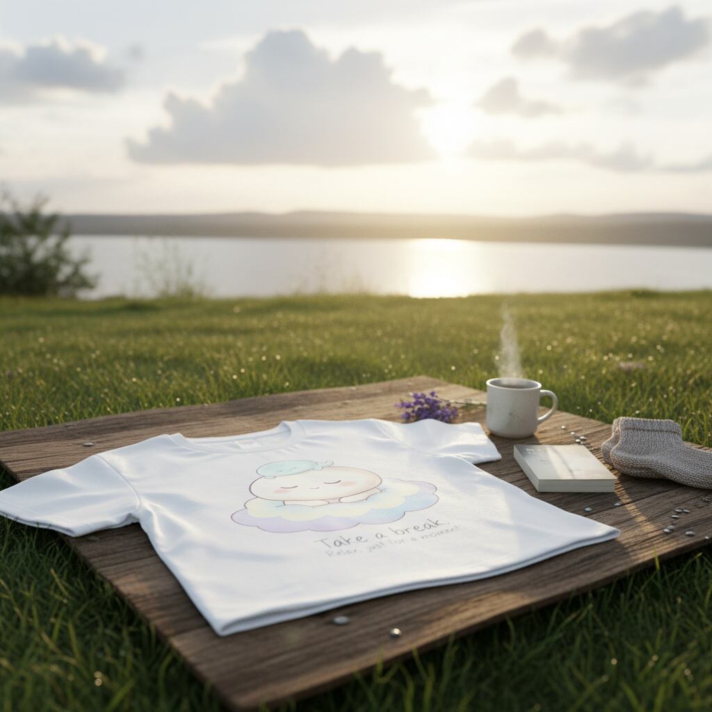 キャラクターが、まるで雲の上や柔らかい絨毯の上で、目を閉じてリラックスしている様子。