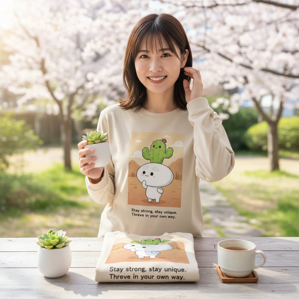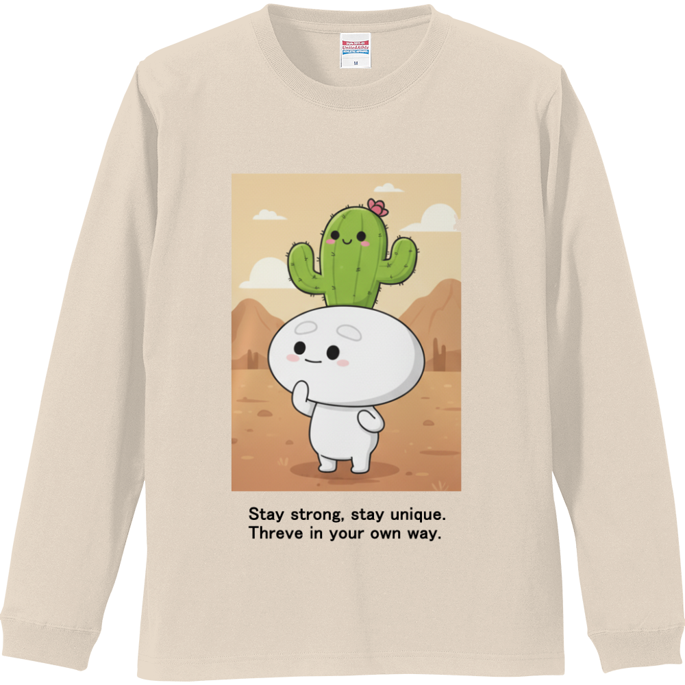 リブ付 ロングスリーブTシャツ『おもちさんと小さなサボテン』