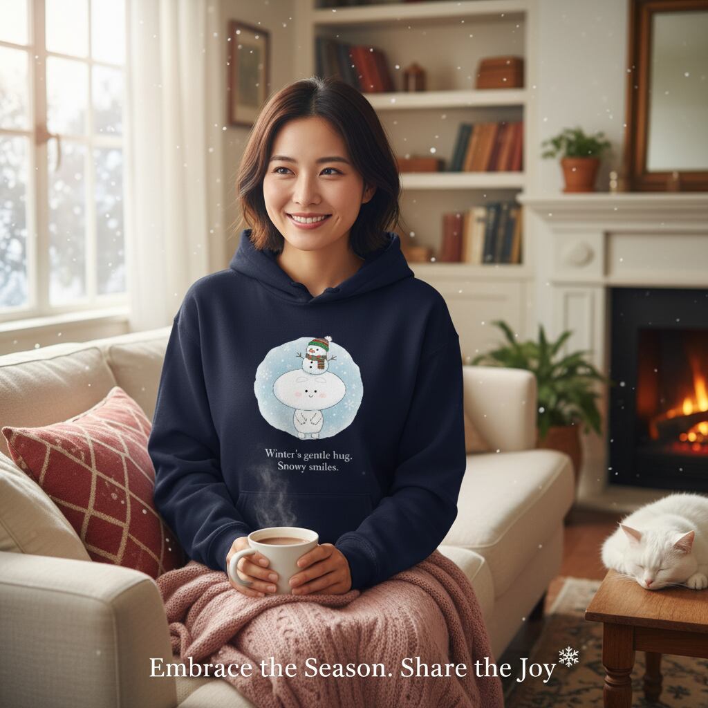 おもちさんと愛らしい雪だるまのイラストが、胸も心もほんのり温めてくれる特別な一着。